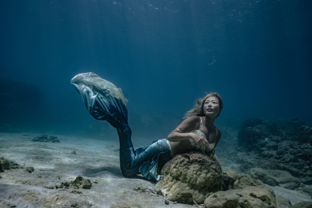 さらにマーメイドとして技術を磨いたら、水中フォト、映像撮影で自己表現を楽しむ機会、様々な海でマーメイドスイムを楽しむ機会としてツアーを実施しております。
